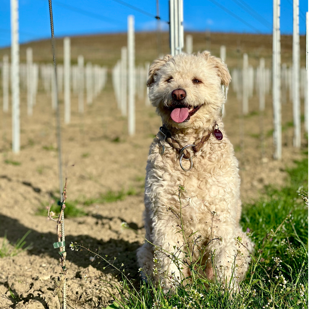 Und dann ist da noch Willi – unser strahlender Weingut-Hund. Er hält die Weinberge im Blick, begleitet uns bei der täglichen Arbeit und zaubert mit seiner fröhlichen Art jedem Gast ein Lächeln ins Gesicht.